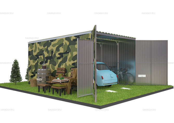 Гараж для Автомобиля с Крышей с Уклоном с Распашными Воротами и Калиткой 4,7м Mini SKOGGY