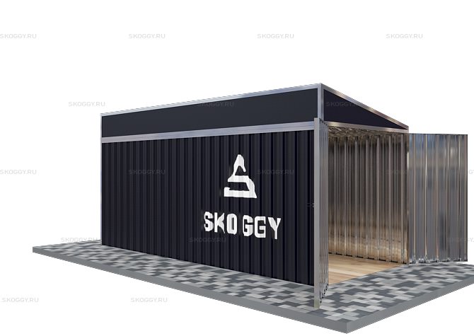 По своей конструкции контейнер Skoggy представляет модульное сооружение, которое состоит из сборных элементов. При сборке элементы устанавливаются один в другой и фиксируются болтовыми соединениями. Конструкция дверей, крыши и стен представляют собой каркас из сложногнутого профиля толщиной 0,7 мм. Каркас обшивается профлистом НС-35 толщиной 0,45-0,55 мм. Такая толщина оптимальна для обеспечения прочности и устойчивости конструкции.