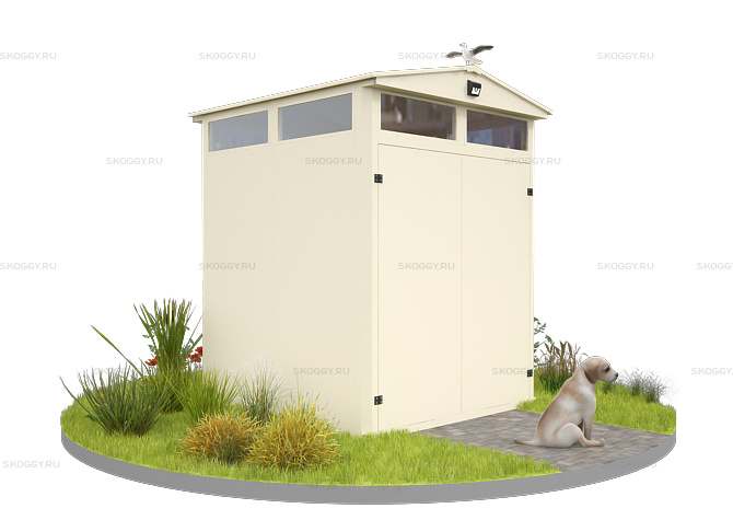 По своей конструкции контейнер Skoggy представляет модульное сооружение, которое состоит из сборных элементов. При сборке элементы устанавливаются один в другой и фиксируются болтовыми соединениями. Конструкция дверей, крыши и стен представляют собой каркас из сложногнутого профиля толщиной 0,7 мм. Каркас обшивается профлистом НС-35 толщиной 0,45-0,55 мм. Такая толщина оптимальна для обеспечения прочности и устойчивости конструкции.