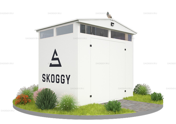 По своей конструкции контейнер Skoggy представляет модульное сооружение, которое состоит из сборных элементов. При сборке элементы устанавливаются один в другой и фиксируются болтовыми соединениями. Конструкция дверей, крыши и стен представляют собой каркас из сложногнутого профиля толщиной 0,7 мм. Каркас обшивается профлистом НС-35 толщиной 0,45-0,55 мм. Такая толщина оптимальна для обеспечения прочности и устойчивости конструкции.