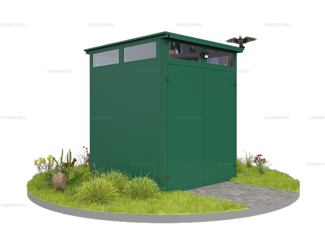 По своей конструкции контейнер Skoggy представляет модульное сооружение, которое состоит из сборных элементов. При сборке элементы устанавливаются один в другой и фиксируются болтовыми соединениями. Конструкция дверей, крыши и стен представляют собой каркас из сложногнутого профиля толщиной 0,7 мм. Каркас обшивается профлистом НС-35 толщиной 0,45-0,55 мм. Такая толщина оптимальна для обеспечения прочности и устойчивости конструкции.