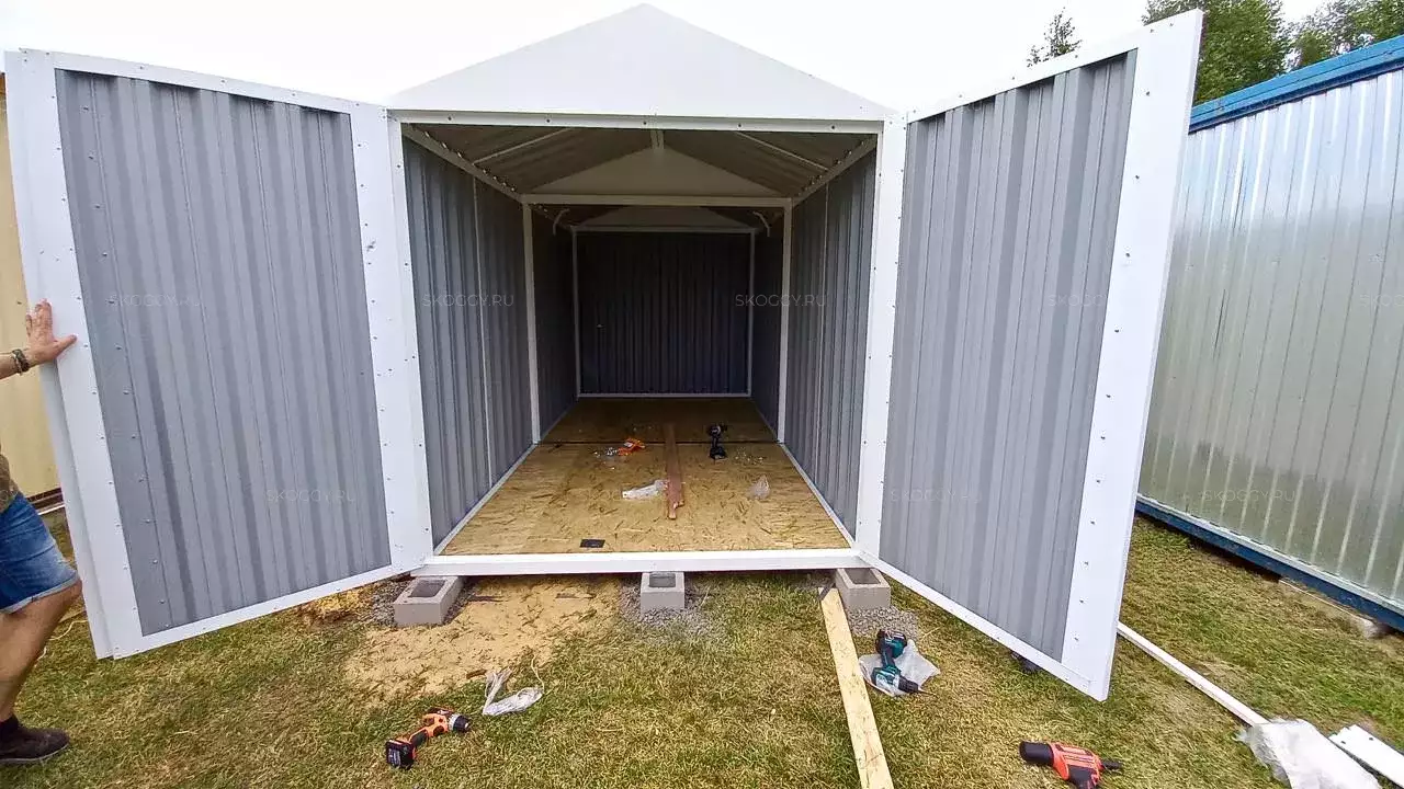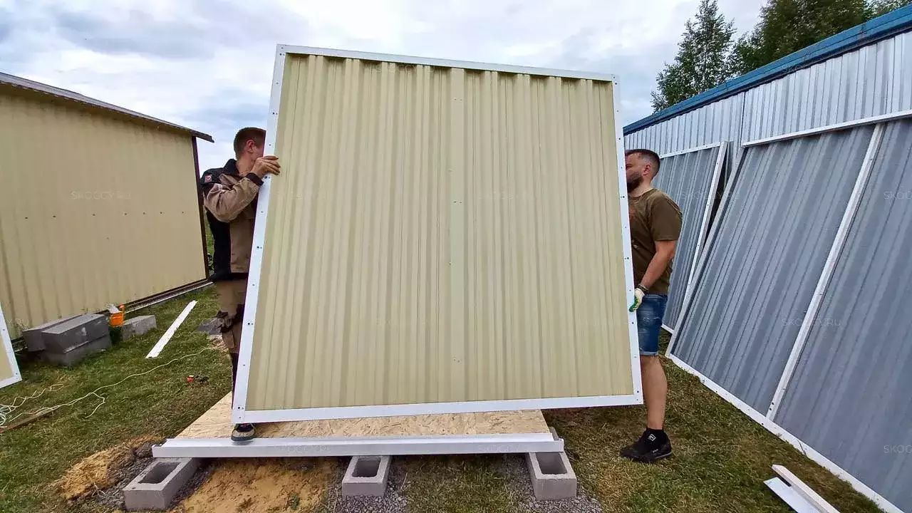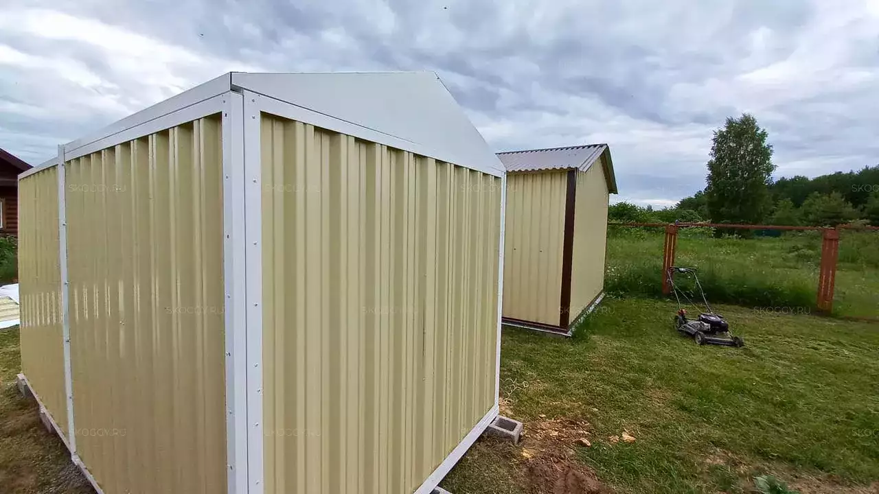 Весь диалог вёлся по телефону и WhatsApp, так как приехать к нам у Евгения не получалось. Согласовав все параметры, а именно цвет (RAL 1015 слоновая кость, потому что гараж Евгения как раз в таком же цвете), тип крыши (двухскатная), длину в 4 м, мы приняли первую часть оплаты и приступили к заказу.
