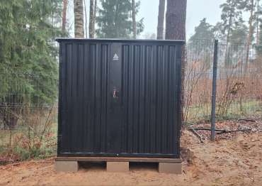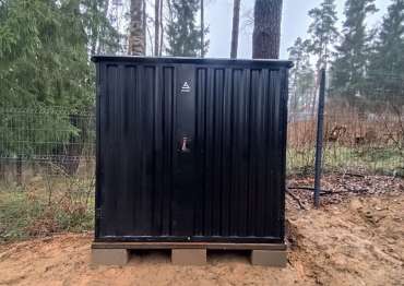Нами была изготовлена стандартная конструкция дровницы размером 1,03 х 2,22 х 2,1 м в классическом черном цвете RAL 9005.