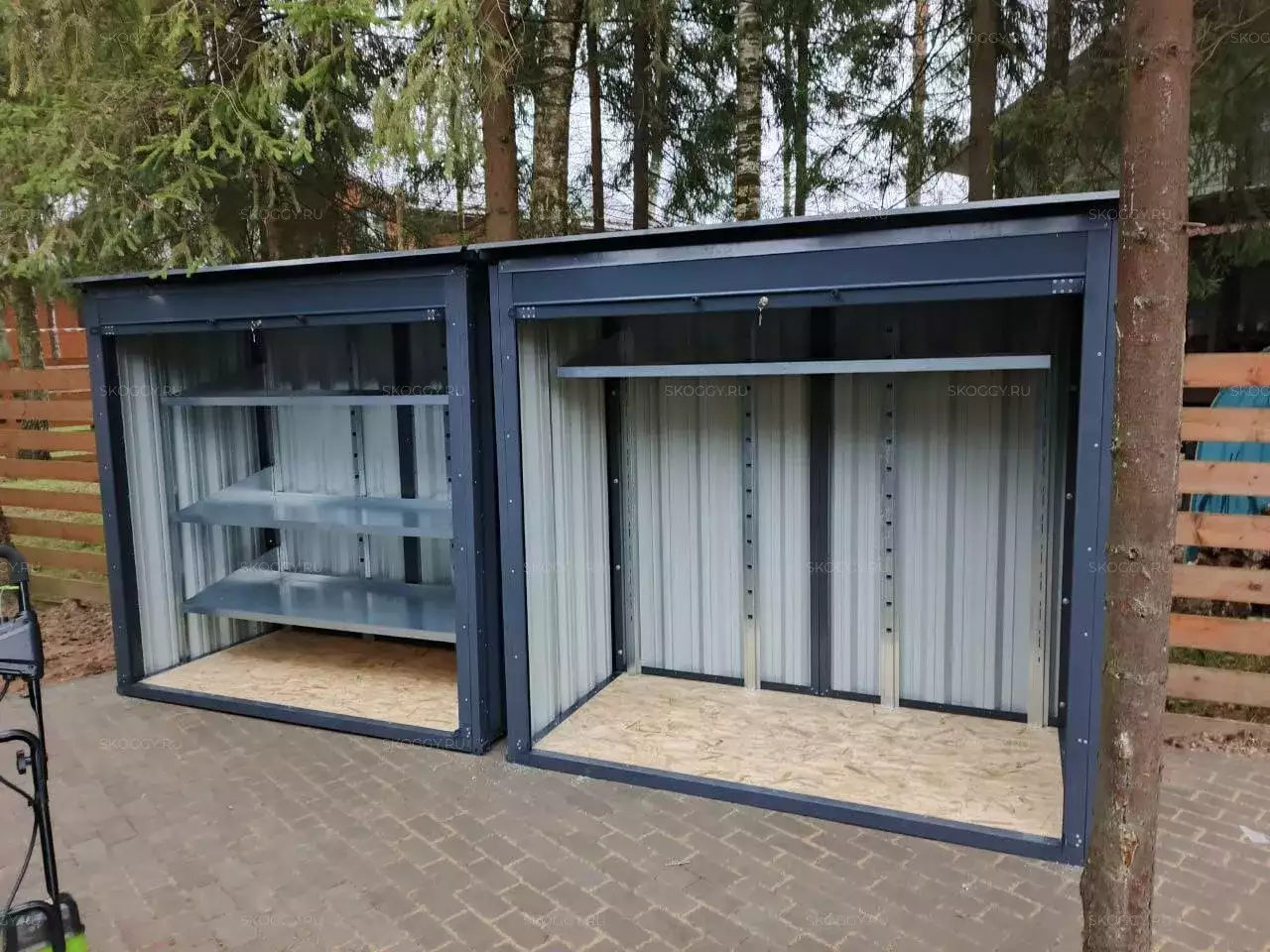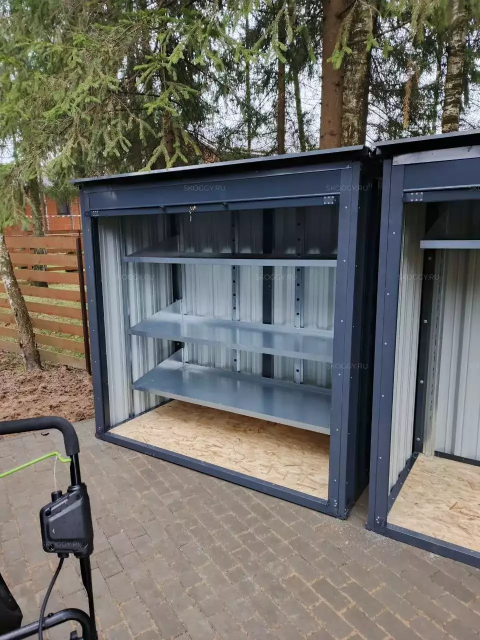 Заказчику этого проекта на участок были необходимы два шкафа для хранения садовой техники, инвентаря и прочих хозяйственных вещей.