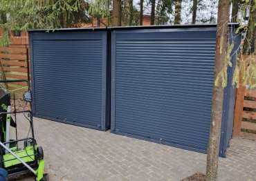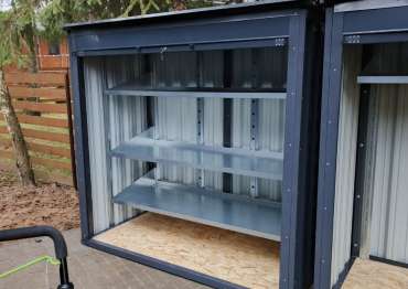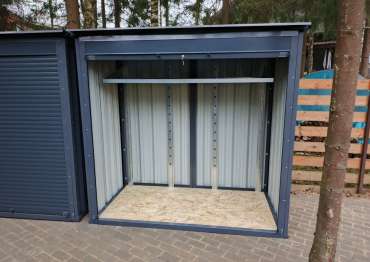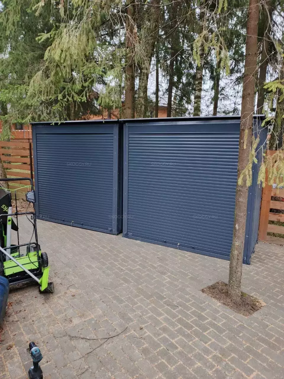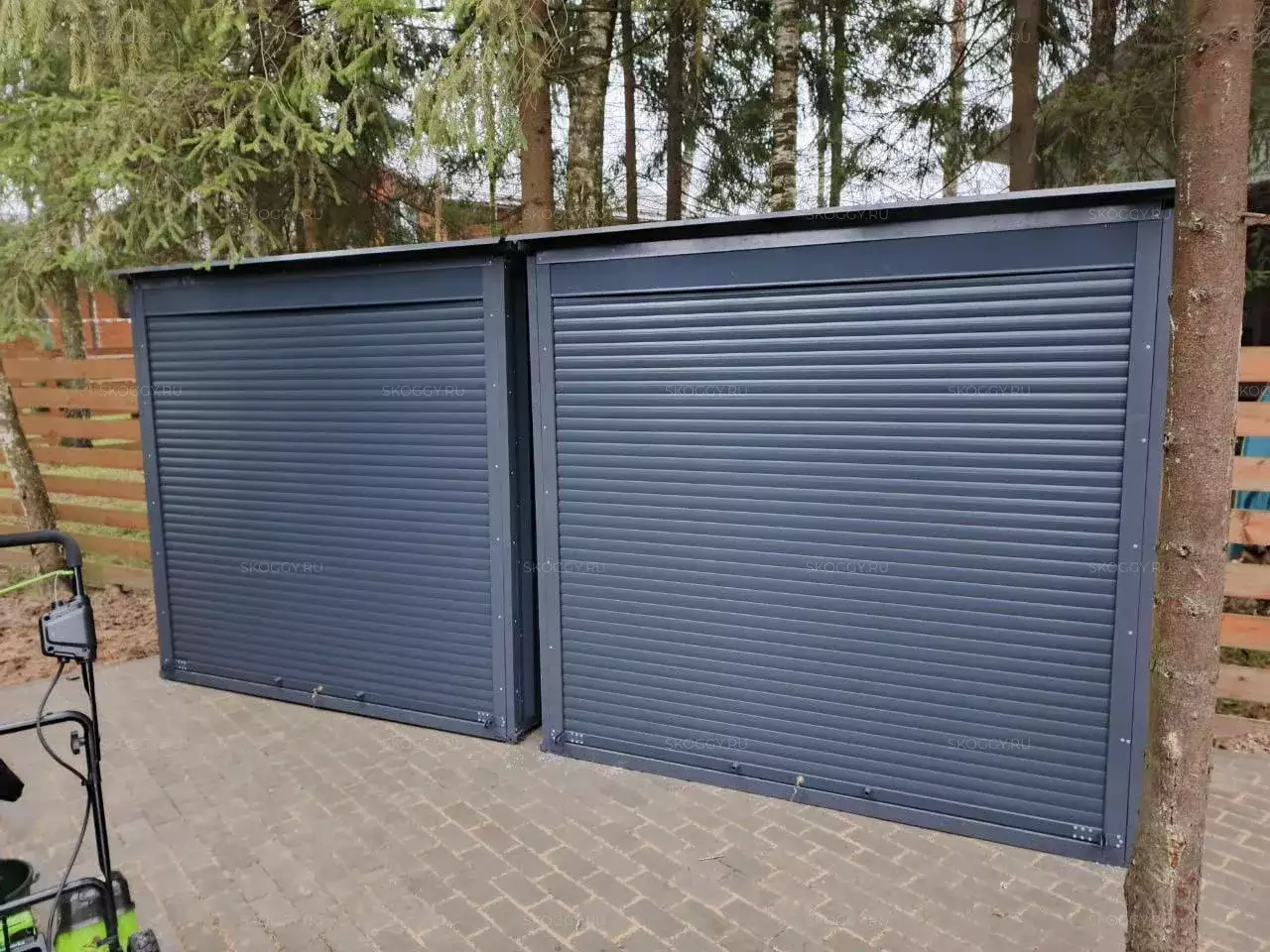 Проект: два роллетный шкафа 1,03 х 2,22 х 2,1 м для хранения садовой техники и инвентаря в графитовом цвете.