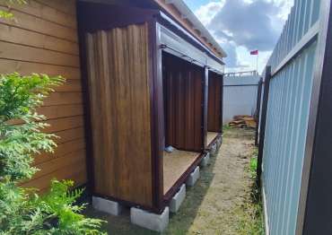 Заказчику этого проекта на загородный участок была необходима компактная, но достаточно вместительная конструкция, и он остановил свой выбор на нашей стандартной конструкции дровницы.