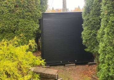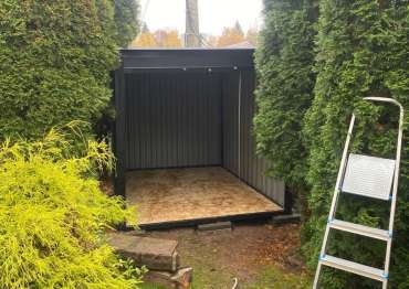 Проект: 3-метровый хозблок для хранения хозяйственных вещей в черном цвете.