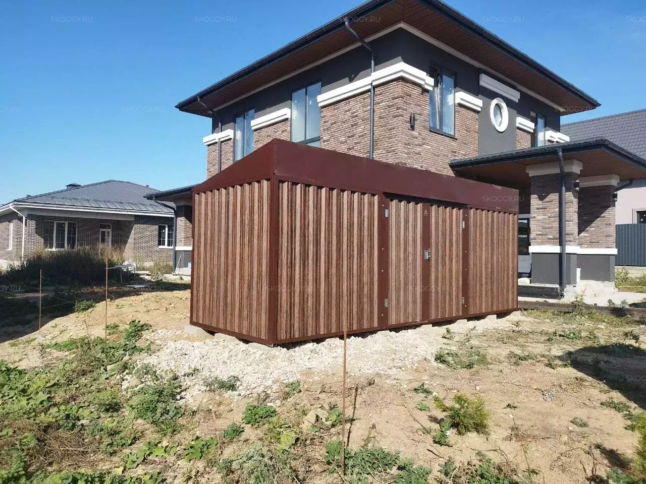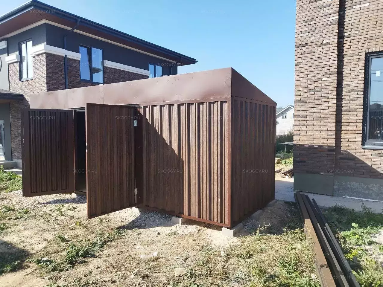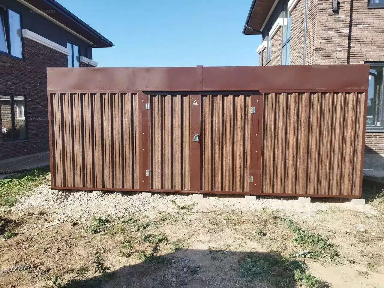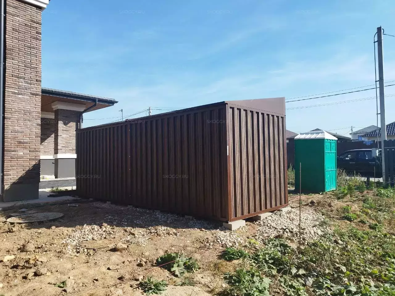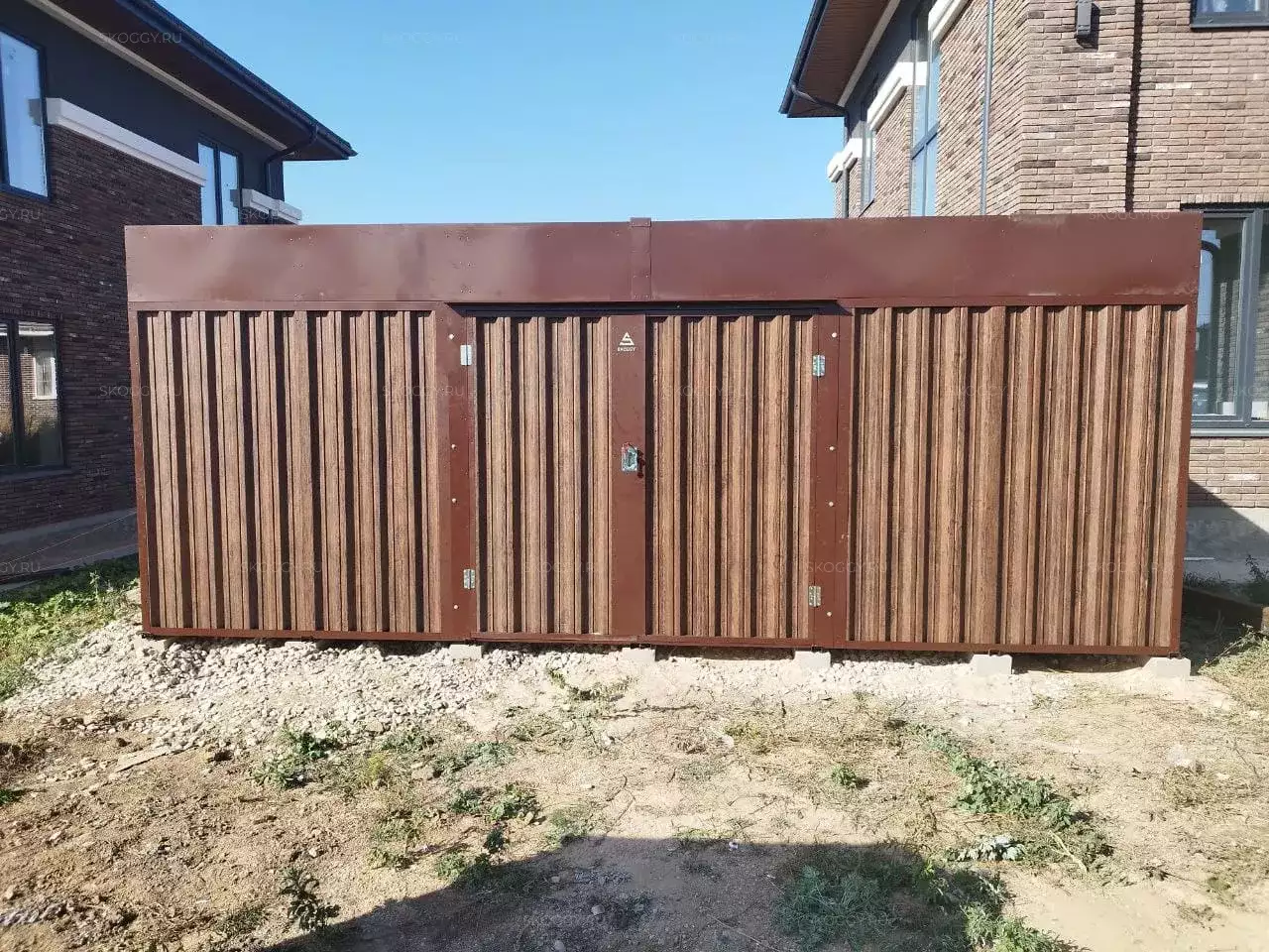 Проект: 6-метровый хозблок для хранения хозяйственных вещей в расцветке "под дерево".