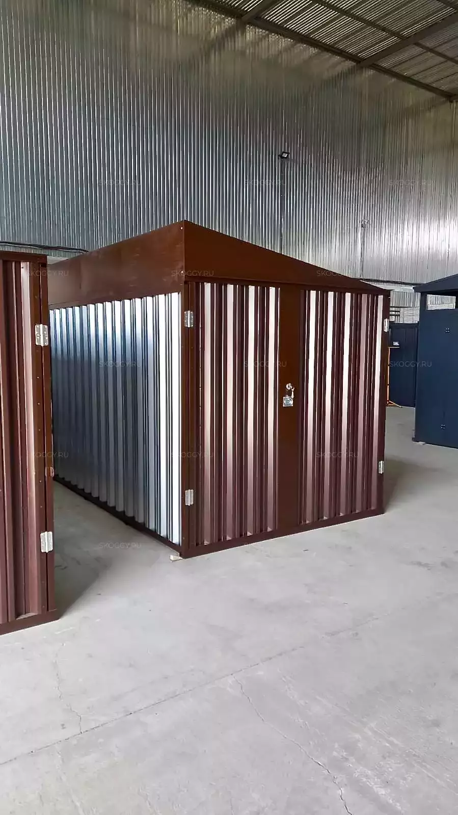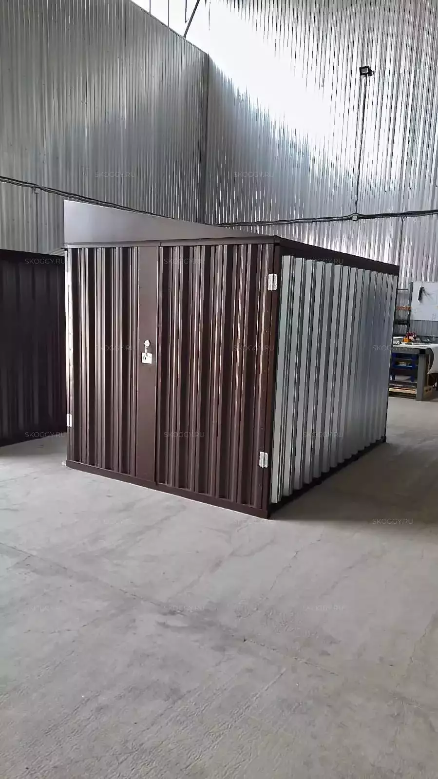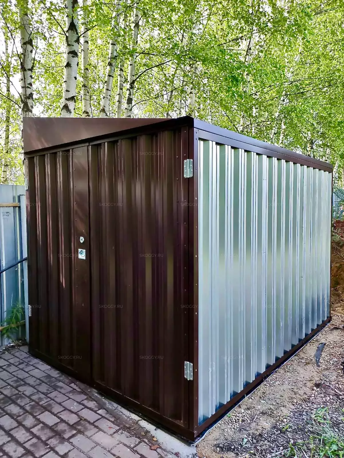 Андрей остановил свой выбор на 3-х метровом блок-контейнере с односкатной крышей (отличный выбор для хранения!). Расцветку выбрал сам из предложенной палитры: стены в стандартном цинковом цвете, а крыша и дверь в цвете RAL 8017 шоколадно-коричневый.