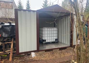 Проект: 2-метровый хозблок для хранения топлива в шоколадно-коричневом цвете.