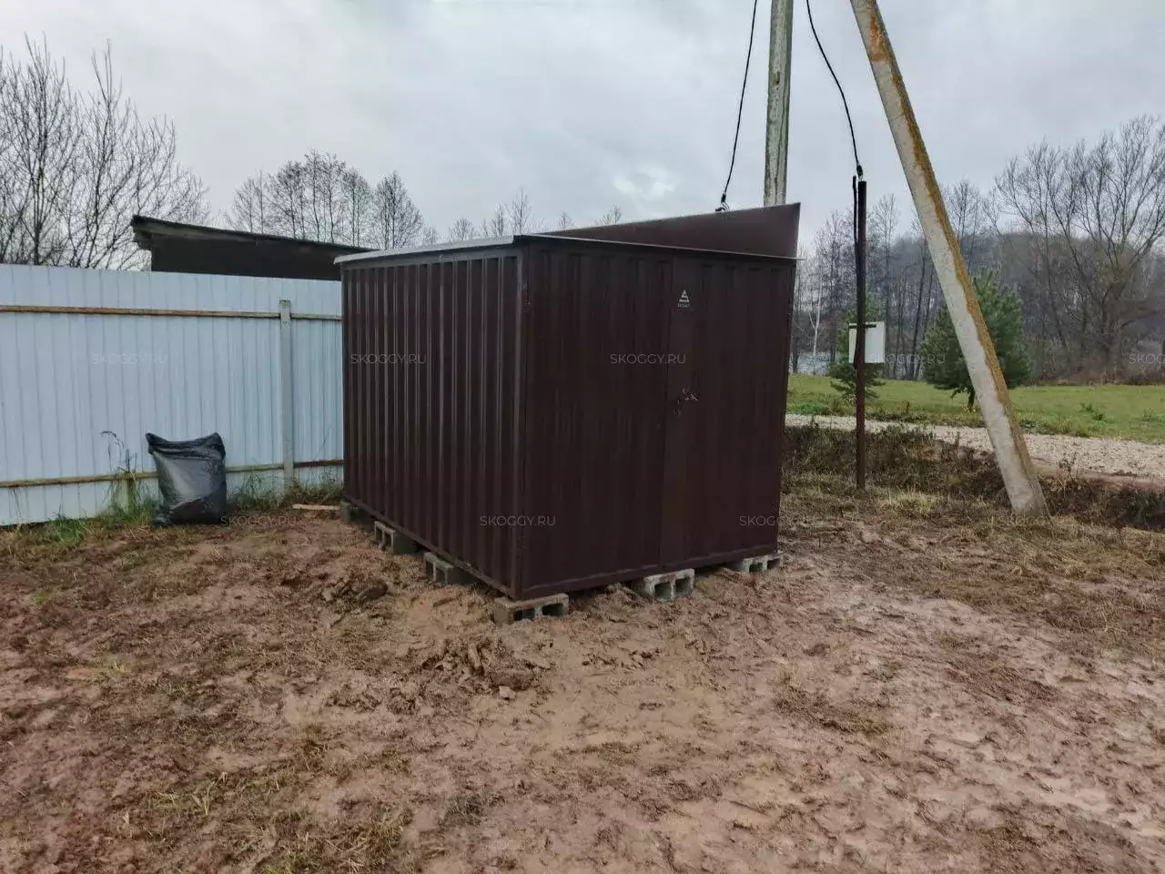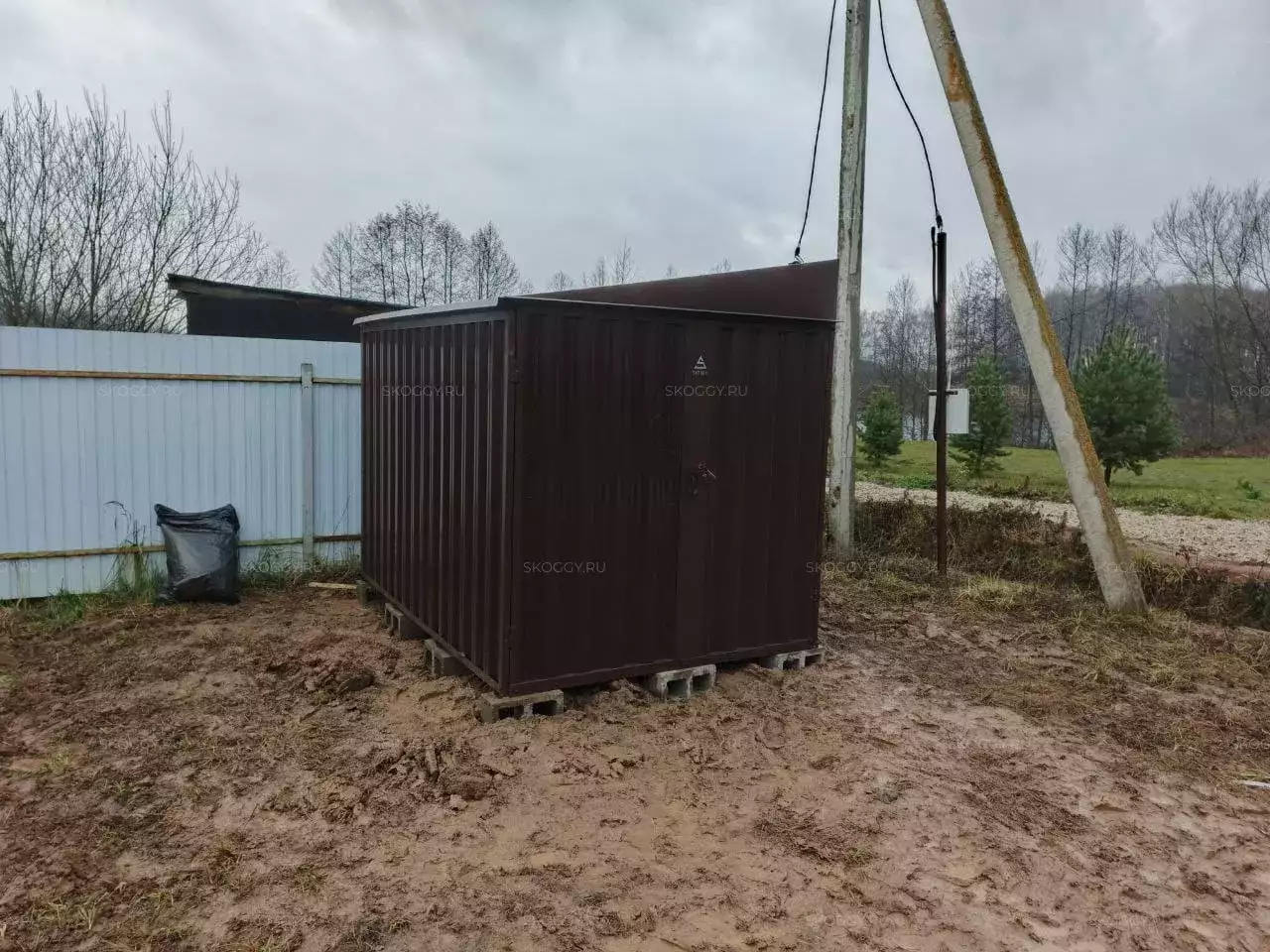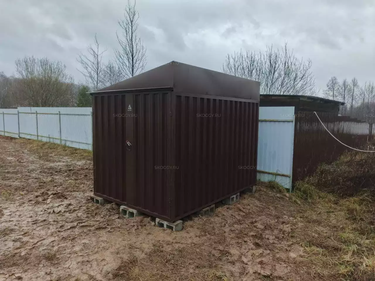 Нами была изготовлена стандартная 3-метровая конструкция с односкатной крышей и торцевой воротной группой в неизменно популярном шоколадно-коричневом цвете RAL 8017.