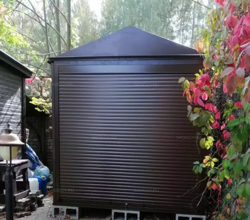 Проект: 3-метровый хозблок для хранения садовой техники и инвентаря в шоколадно-коричневом цвете.