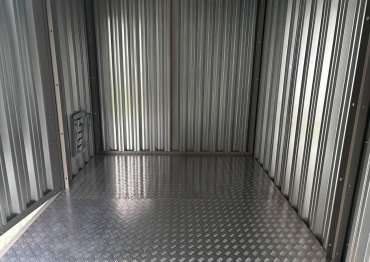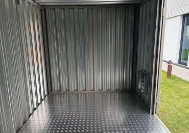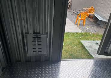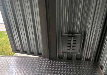 Дополнительно хозблок был оборудован металлическим полом толщиной 1,5 мм с чечевичным рифлением поверх плиты OSB, а также пандусами для комфортного въезда техники.