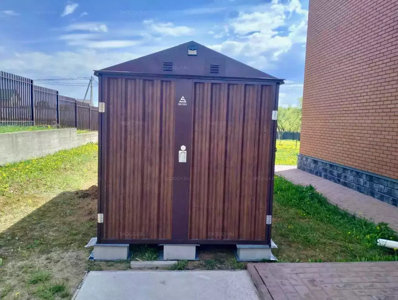 Работы закончены, и теперь у заказчика есть практичный помощник, который будет бережно хранить садовую технику и прочие доверенные ему вещи, а внутренние стеллажи помогут удобно распределить свободное место.