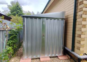 Проект: 6-метровый хозблок для хранения велосипедов, садового инвентаря и хозяйственных принадлежностей в цинковом цвете.