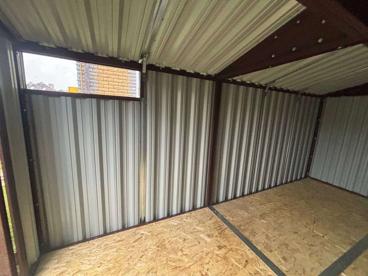 Дополнительно хозблок оборудован световым окном размером 90 х 30 см для проникновения естественного света внутрь постройки.
