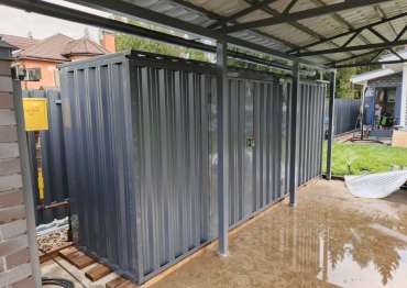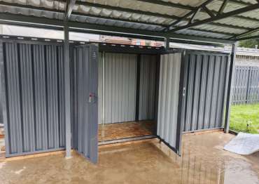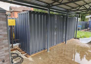 Проект: хозблок по индивидуальным размерам 5 х 1,3 х 2,06 м для хранения хозяйственных вещей в груфитовом цвете.