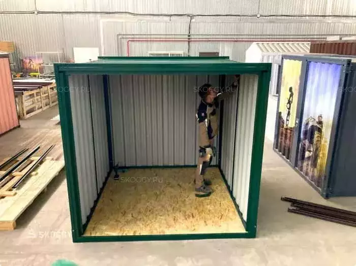Алексей выбрал хозблок цвете RAL 6005 Зеленый мох, но у нас можно изготовить блок-контейнер во всех цветах стандартных RAL, нестандартные RAL по запросу.