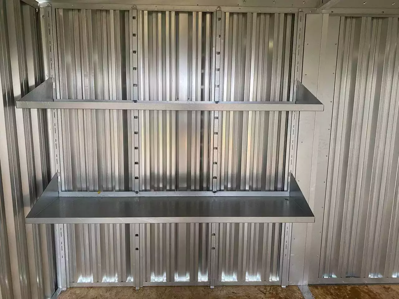 Дополнительно гараж был укомплектован системой хранения инвентаря, прямым стеллажом и дополнительной дверью шириной 1 м.