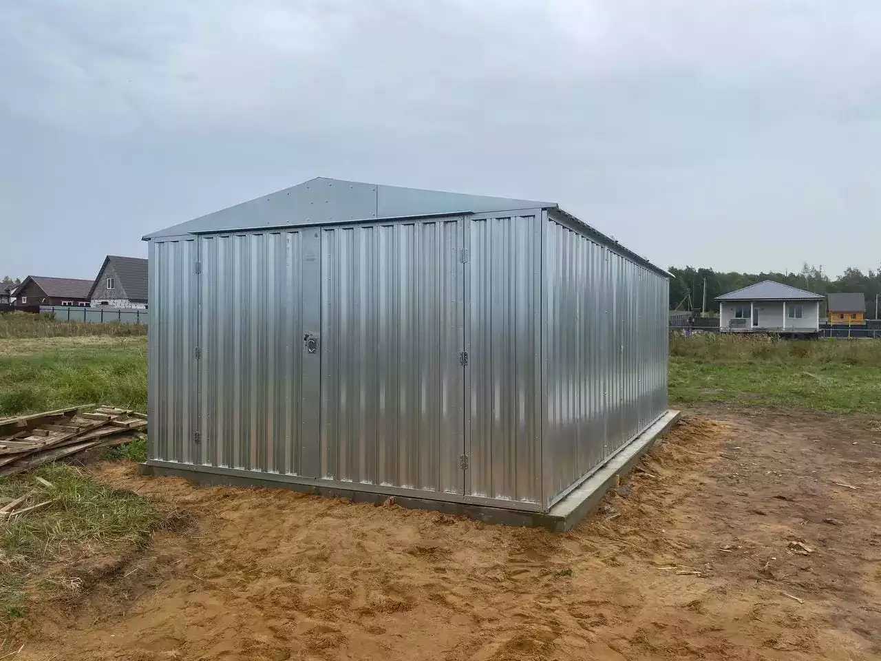 Проект: вместительный широкий 7-метровый автомобильный гараж в цинковом цвете.