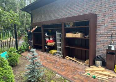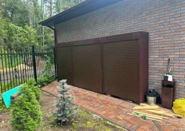 Нами была изготовлена конструкция размером 1,5 х 2,1 х 0,5 м с рольставней в стильном шоколадно-коричневом цвете RAL 8017.