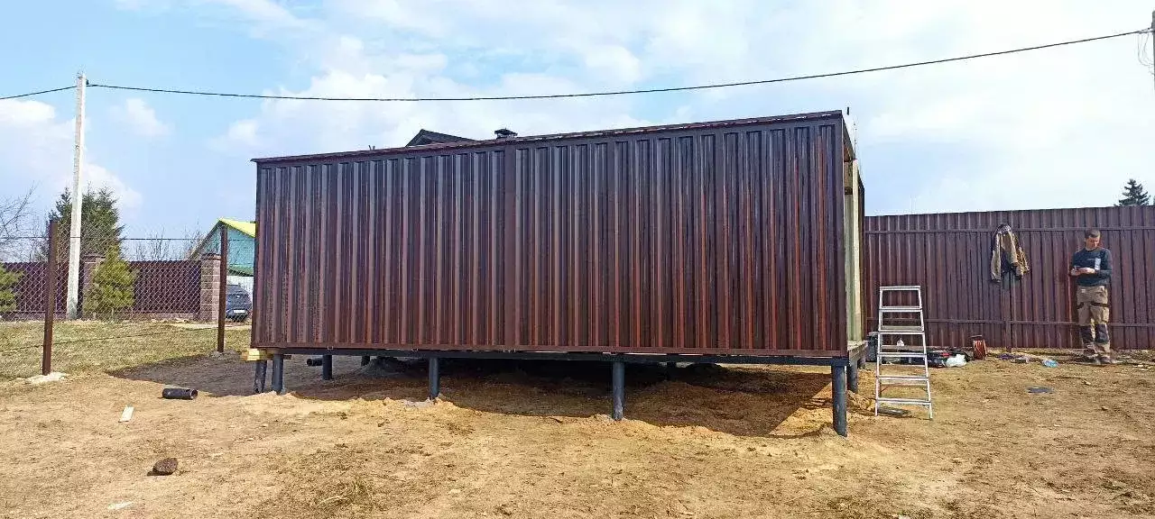 Этот хозблок по желанию заказчика окрасили в цвет RAL 8017. Получился очень эстетичный шоколадный помощник в хозяйстве Николая.