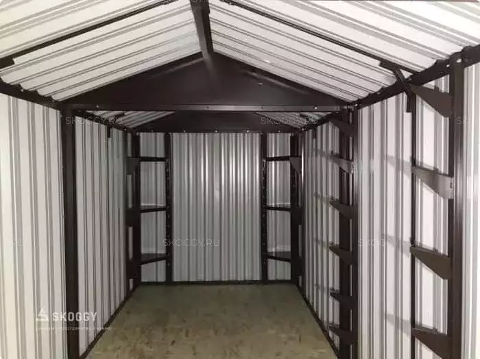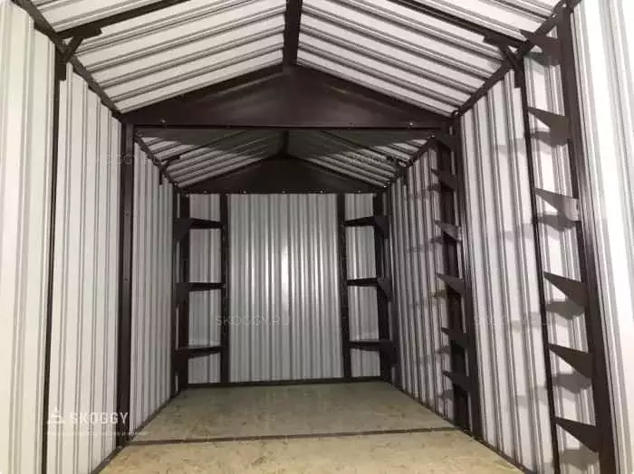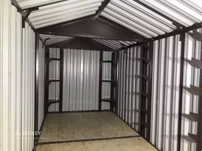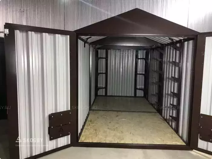 К нам обратился клиент, у которого уже имелся блок-контейнер от компании SKOGGY. Он решил усовершенствовать его и оптимизировать хранение инвентаря с помощью углового стеллажа и специальной системы на направляющих.