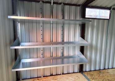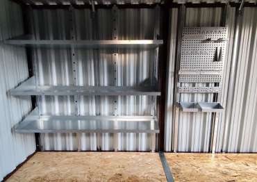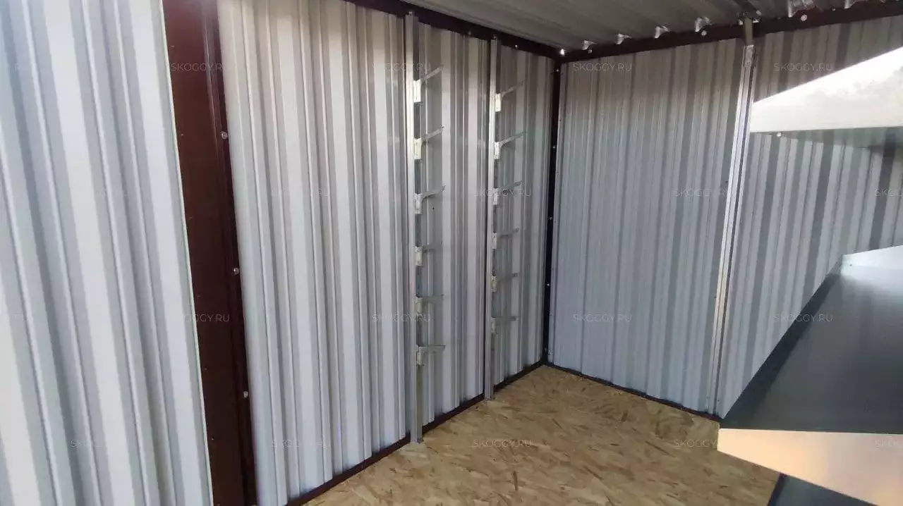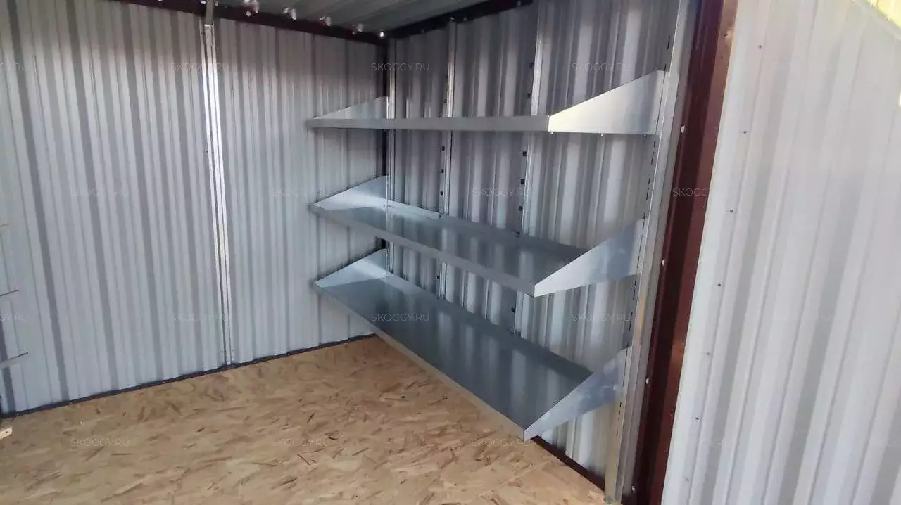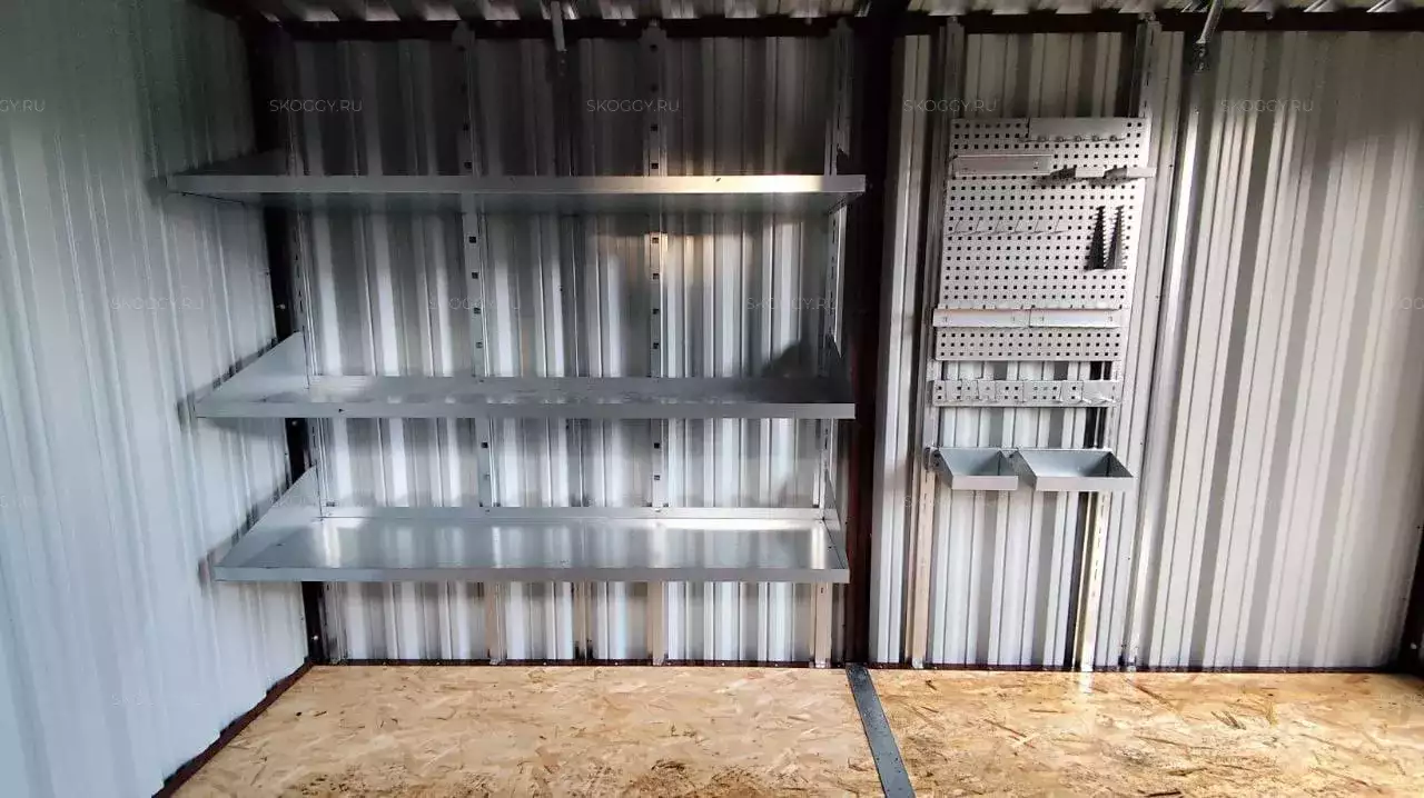 Дополнительно шкаф был оборудован прямым стеллажом с тремя полками, а хозблок дополнили длинным стеллажом с полками, системой хранения инвентаря, инструментальной панелью и пандусами.