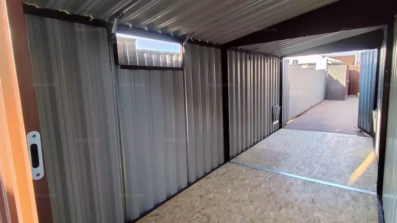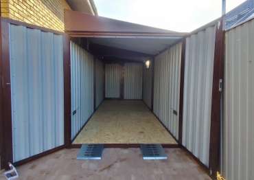 Заказчику этого проекта на участок были необходимы две конструкции: одна - для хранения мототехники, вторая - для садовой техники и инвентаря. Прежде, чем совершить покупку, заказчик приезжал к нам на выставочную площадку для того, чтобы лично убедиться в качестве наших изделий. Очень разумное и выгодное решение! Ведь за свой визит заказчик получил от нас приятную скидку :)