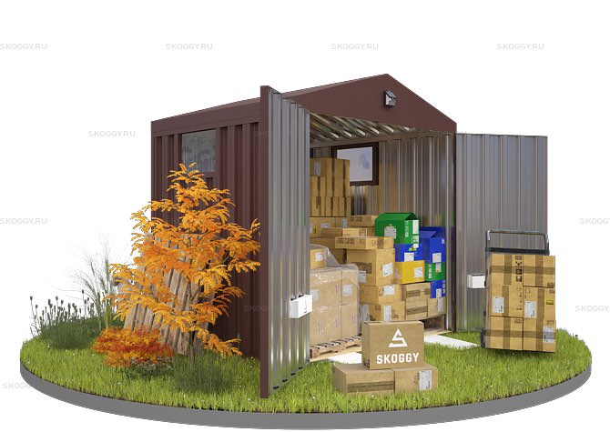 По своей конструкции контейнер Skoggy представляет модульное сооружение, которое состоит из сборных элементов. При сборке элементы устанавливаются один в другой и фиксируются болтовыми соединениями. Конструкция дверей, крыши и стен представляют собой каркас из сложногнутого профиля толщиной 0,7 мм. Каркас обшивается профлистом НС-35 толщиной 0,45-0,55 мм. Такая толщина оптимальна для обеспечения прочности и устойчивости конструкции.