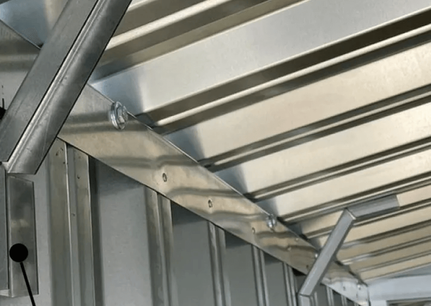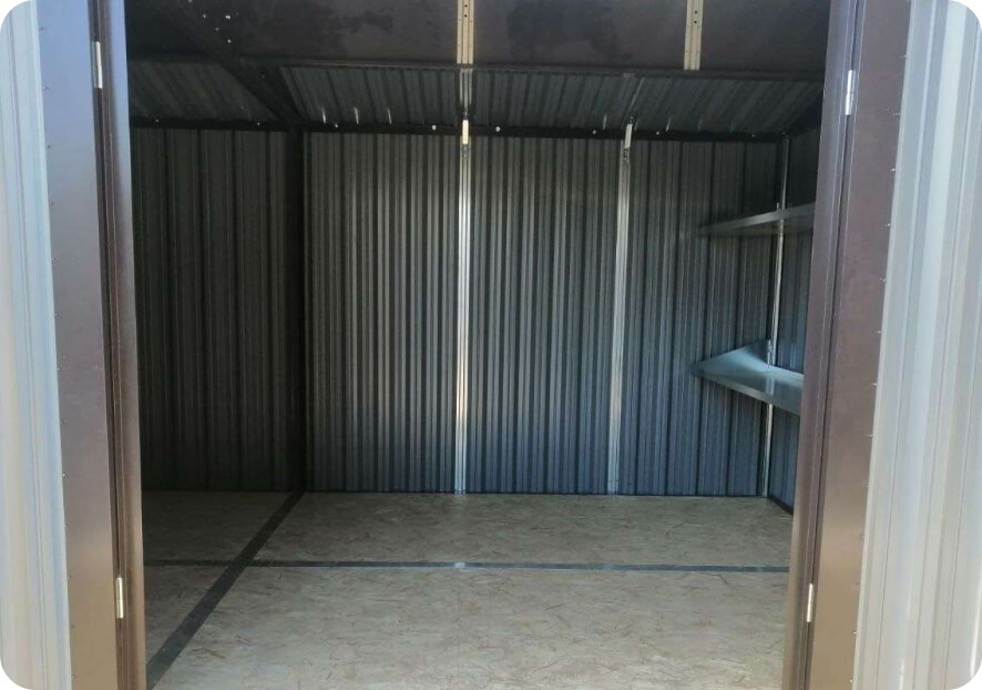 Хозблок герметичен, но имеет вентиляцию. Это реализовано за счет гофрированной структуры профлиста, которая позволяет потокам воздуха циркулировать внутри, не нарушая целостности хранящихся там вещей.