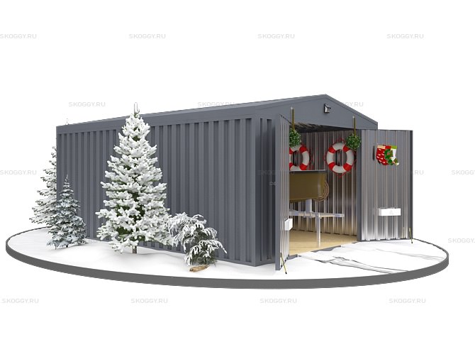 По своей конструкции контейнер Skoggy представляет модульное сооружение, которое состоит из сборных элементов. При сборке элементы устанавливаются один в другой и фиксируются болтовыми соединениями. Конструкция дверей, крыши и стен представляют собой каркас из сложногнутого профиля толщиной 0,7 мм. Каркас обшивается профлистом НС-35 толщиной 0,45-0,55 мм. Такая толщина оптимальна для обеспечения прочности и устойчивости конструкции.