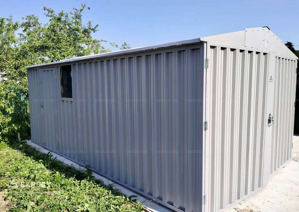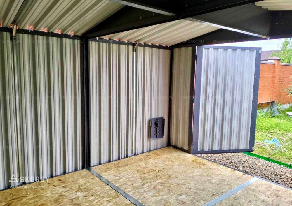 Данная модель разработана с учетом модульной сборки, что облегчает монтаж и транспортировку. Каркас изготовлен из высокопрочной стали, а стены и крыша – из оцинкованного профилированного листа, защищающего от коррозии. Пол выполнен из прочных 18 мм OSB плит, выдерживающих нагрузки до 500 кг на квадратный метр.