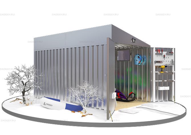 По своей конструкции контейнер Skoggy представляет модульное сооружение, которое состоит из сборных элементов. При сборке элементы устанавливаются один в другой и фиксируются болтовыми соединениями. Конструкция дверей, крыши и стен представляют собой каркас из сложногнутого профиля толщиной 0,7 мм. Каркас обшивается профлистом НС-35 толщиной 0,45-0,55 мм. Такая толщина оптимальна для обеспечения прочности и устойчивости конструкции.