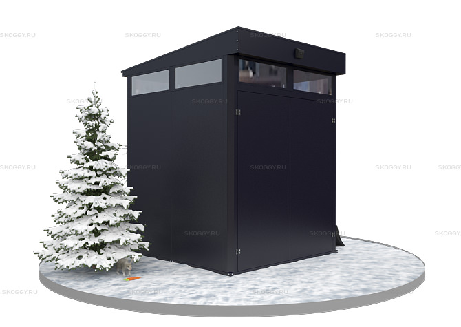 По своей конструкции контейнер Skoggy представляет модульное сооружение, которое состоит из сборных элементов. При сборке элементы устанавливаются один в другой и фиксируются болтовыми соединениями. Конструкция дверей, крыши и стен представляют собой каркас из сложногнутого профиля толщиной 0,7 мм. Каркас обшивается профлистом НС-35 толщиной 0,45-0,55 мм. Такая толщина оптимальна для обеспечения прочности и устойчивости конструкции.
