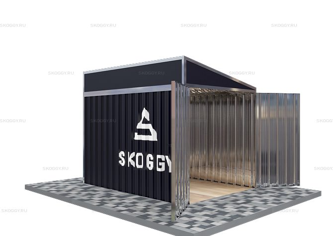 По своей конструкции контейнер Skoggy представляет модульное сооружение, которое состоит из сборных элементов. При сборке элементы устанавливаются один в другой и фиксируются болтовыми соединениями. Конструкция дверей, крыши и стен представляют собой каркас из сложногнутого профиля толщиной 0,7 мм. Каркас обшивается профлистом НС-35 толщиной 0,45-0,55 мм. Такая толщина оптимальна для обеспечения прочности и устойчивости конструкции.
